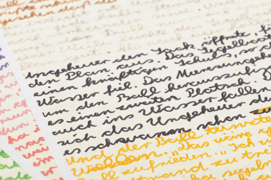 Aber mir kam diese Idee mit der Fernreise und ich schrieb die Geschichte in farbiger Schönschrift. Als der Urlaub zu Ende war, war es die Geschichte auch.